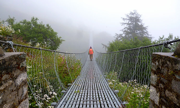 Trekking is the preferred word used to describe multi-day hiking in the mountainous regions of India, Pakistan, Nepal, North America, South America, Iran and in the highlands of East Africa. Hiking a long-distance trail from end-to-end is also referred to as trekking and as thru-hiking in some places. In North America, multi-day hikes, usually with camping, are referred to as backpacking. Another famous early exponent of walking for pleasure, was the English poet William Wordsworth. In 1790 he embarked on an extended tour of France, Switzerland, and Germany, a journey subsequently recorded in his long autobiographical poem The Prelude .His famous poem Tintern Abbey was inspired by a visit to the Wye Valley made during a walking tour of Wales in 1798 with his sister Dorothy Wordsworth.